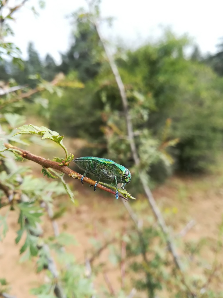 La mattina del terzo giorno, dopo la consueta colazione corazzata, decidiamo di controllare un punto non lontano da Ifrane che avevo visitato anche lo scorso anno, situato in una valle umida con altissimi pioppi, alcuni dei quali morti. È un punto che permette di poter godere di ombra, di cercare xilofagi su tronchi e ceppaie, coprofagi perché in prossimità c'è pascolo, floricoli perché nei punti assolati ci sono varie fioriture. Insomma si può fare un po' di tutto. Trascorriamo lì circa 4 ore raccogliendo buprestidi su ramaglia morta da poco di pioppo, alcuni helopini sotto corteccia, carabidi in mezzo all'erba e sotto pietra, qualche elateride e histeride nei cavi degli alberi, crisidi sui tronchi morti:
