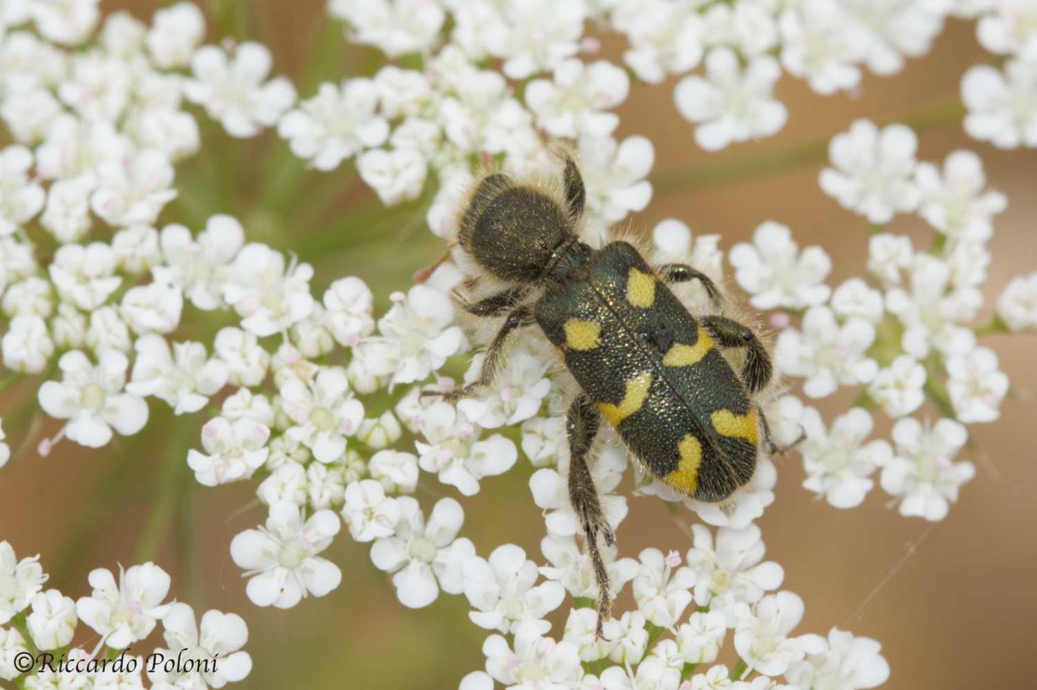 Le ammucchiate di cetonie sui fiori è una regola. Raccolgo una bella serie di Aethiessa perchè, almeno a vederle, sembrano molto diverse tra loro come proporzioni del pronoto, dimensioni e estensione delle macchie bianche.