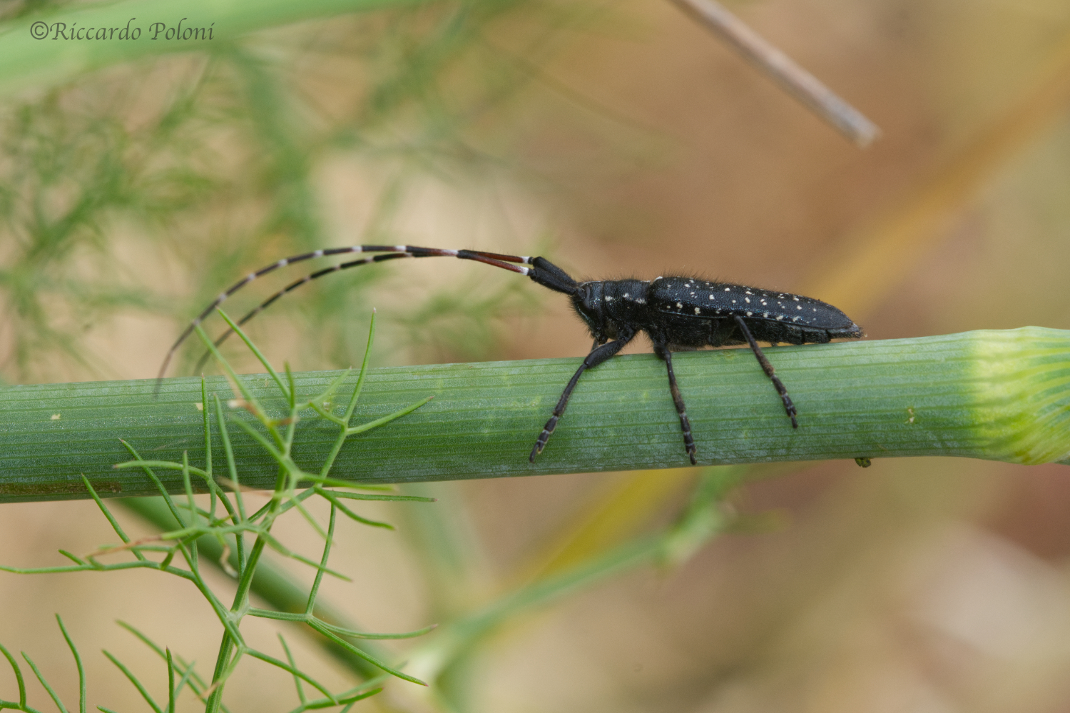Dopo un paio d’ore, vista la scarsità di reperti, decidiamo di tornare indietro e ci fermiamo lungo la strada che attraversa le zone coltivate, dove ci sono alcune grosse ombrellifere, cardi e finocchi selvatici. Sulle prime troviamo diversi cleridi e qualche Anthypna, sui cardi invece le solite Agapanthia irrorata e A. annularis. Su questo fiore, che dovrebbe essere delle asteracee, erano numerosissimi i Glaphyrus, oltre che su alcuni cardi bassi. Raccogliamo anche alcuni Meloidi non ancora visti, che verranno presto determinati.