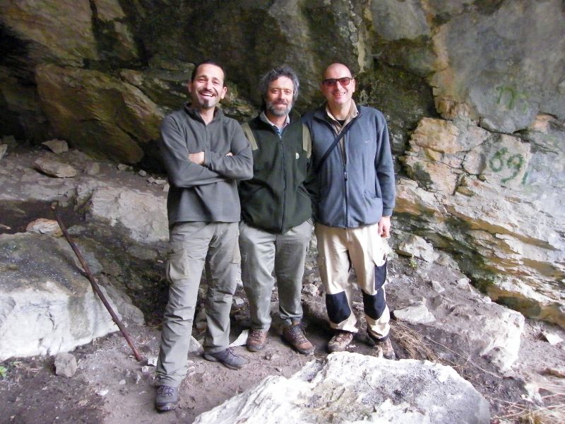 Giunti a una cavità denominata "Grotta dei Caprini" faccio una foto al gruppo: da sinistra a destra: Andrea Corso, Sergio Pasquali e Roberto Casalini.