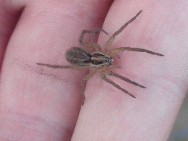 E' un esemplare giovane (puoi indicare una misura del corpo?) di Hogna radiata, come gia ti hanno detto un Lycosidae. Ragno molto bello che da adulto raggiunge dimensioni importanti superando anche i 2 centimetri di corpo. Vive sul terreno, in ripari piu o meno di fortuna, cacciando a vista e spesso con una sorprendente irruenza.