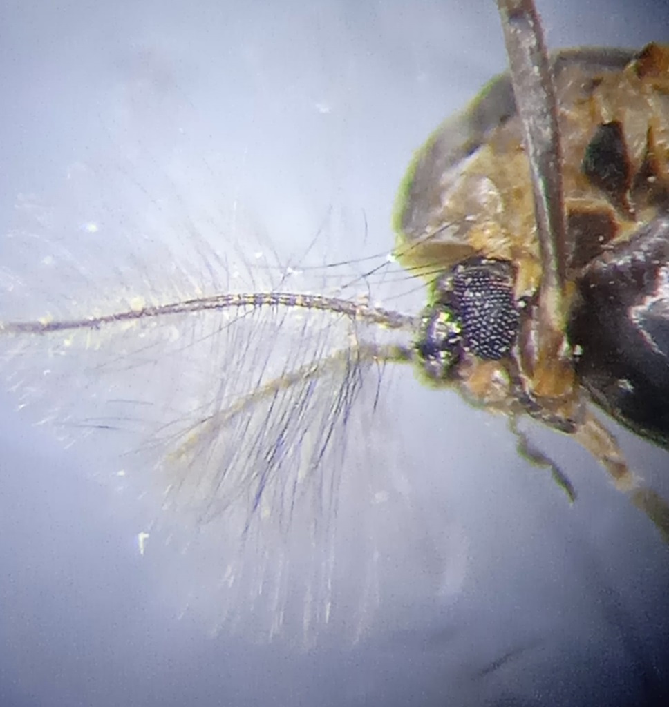 Maschio di Chironomidae. E' una famiglia piuttosto popolata con una letteratura abbastanza frammentaria; con questa foto solo un vero esperto potrebbe dire qualcosa in più. Forse aprendo una richiesta di identificazione su Diptera.info John Carr potrebbe suggerire un genere, ma almeno alla sottofamiglia ci arriverebbe. In ogni caso per qualunque dittero è sempre bene cercare di mettere in evidenza la nervatura alare. |