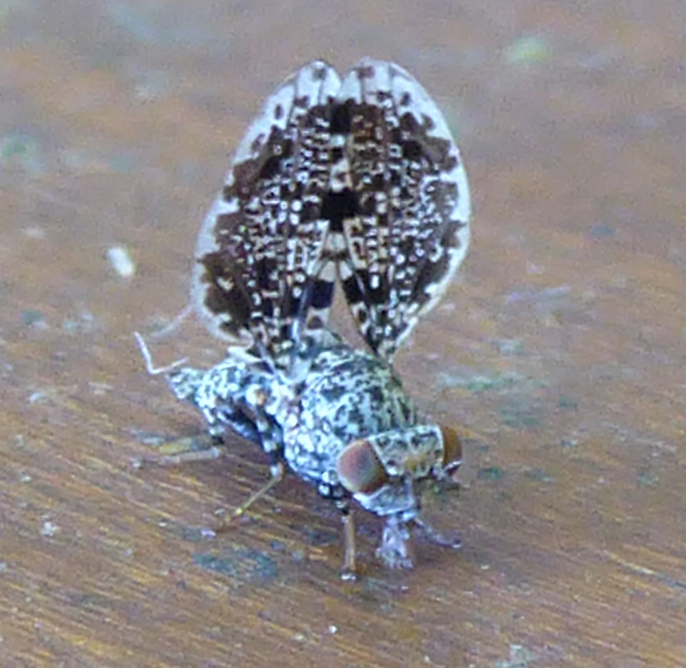 Buonasera! Questo pomeriggio ho fotografato quello che credo sia il dittero più peculiare che abbia mai visto: questo aggeggino molto piccolo, che teneva le ali a mo' di coda di pavone. Qualcuno sa dirmi cos'è?