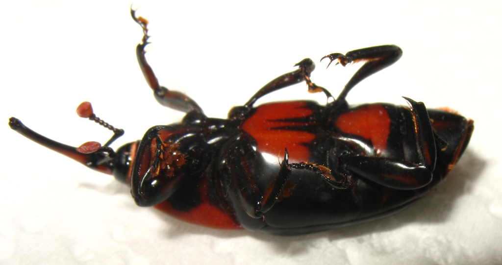 Detto questo il presunto succhiatore (non lo è: all'apice del rostro ci sono due mandibole) è l'esotico punteruolo delle palme, Rhynchophorus ferrugineus.