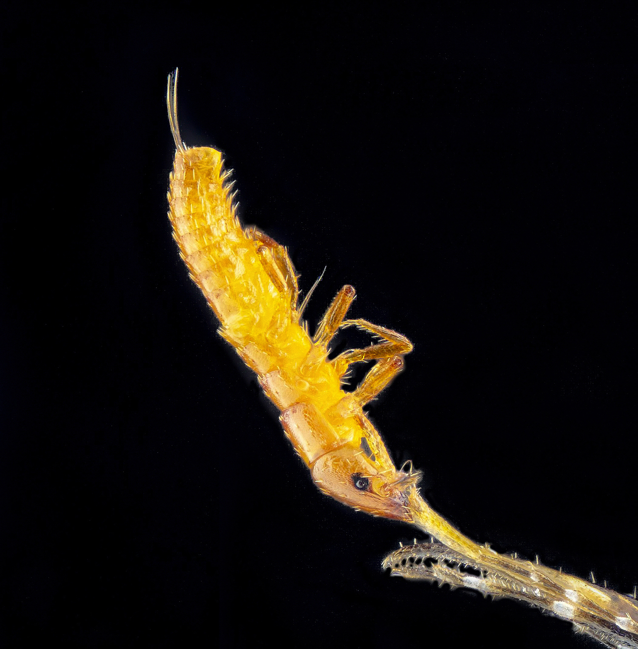 Ma appeso come questo, saldamente agganciato alla ligula di un piccolo Apidae, è proprio la prima volta che mi capita :o