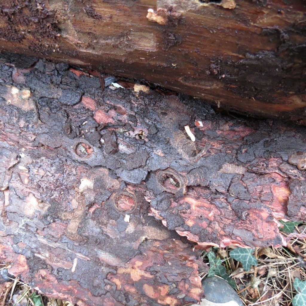 Tra i pochi insetti, numerosissimi esemplari di Rhagium inquisitor ancora in celletta, sotto le cortecce. E' una specie comune sulle nostre Prealpi ma, se non ricordo male, non l'avevo mai osservata sui Colli.