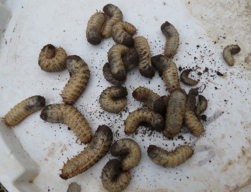 Un giorno mentre cercavo sotto alcune pietre e contenitori lasciati nel giardino della mia morosa ho trovato sotto un coperchio vicinissimo al bidone del compost , un sacco di larve di Cetonidae e Rutelidae , alcune molto grosse forse di Cetonischema , scavando 10 - 15 cm ho pure trovato alcune larve di Elateridae tutte messe in allevamento in loco .