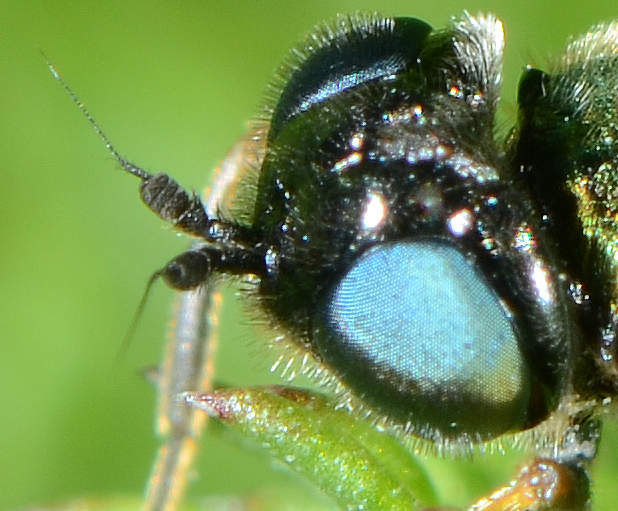 Si, ci sei. Seguendo le tavole di J.P. Balmer si arriva con certezza a Sarginae, poi mi sembra che la pelosità degli occhi faccia propendere per Chloromyia. Io con qualche dubbio direi Chloromyia speciosa (Macquart, 1834).