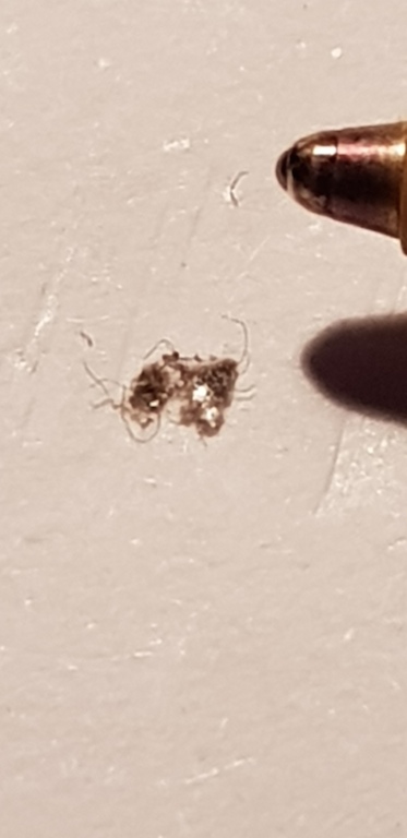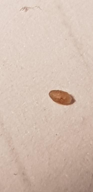 Salve a tutti, come diceva Glaphyrus mi è stata consigliata una fumigazione con termonebbiogeno... ma non so ancora se ho risolto qualcosa o no...... di seguito vi posto i ritrovamenti post disinfestazione e due foto simili alle tante precedentemente postate di questi granellini che però ho ritrovato su indumenti che avevo lavato a 80 gradi e asciugati in asciugatrice e riposto in buste sigillate prima della fumigazione, naturalmente ritrovati addosso, sempre in vicinanza dei fori sul tessuto, a seguito di intenso pizzicore.Per cui per precauzione imbottirò di antitarme simil naftalina le buste con gli indumenti lavati precedentemente alla disinfestazione sperando di non avere altri avvistamenti........ preferivo essermi immaginato tutto... :) :) :)