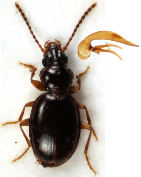 Da notare lo stranissimo edeago (anche se un po' tutte le specie di Trechus del gruppo strigipennis hanno forme strane).
