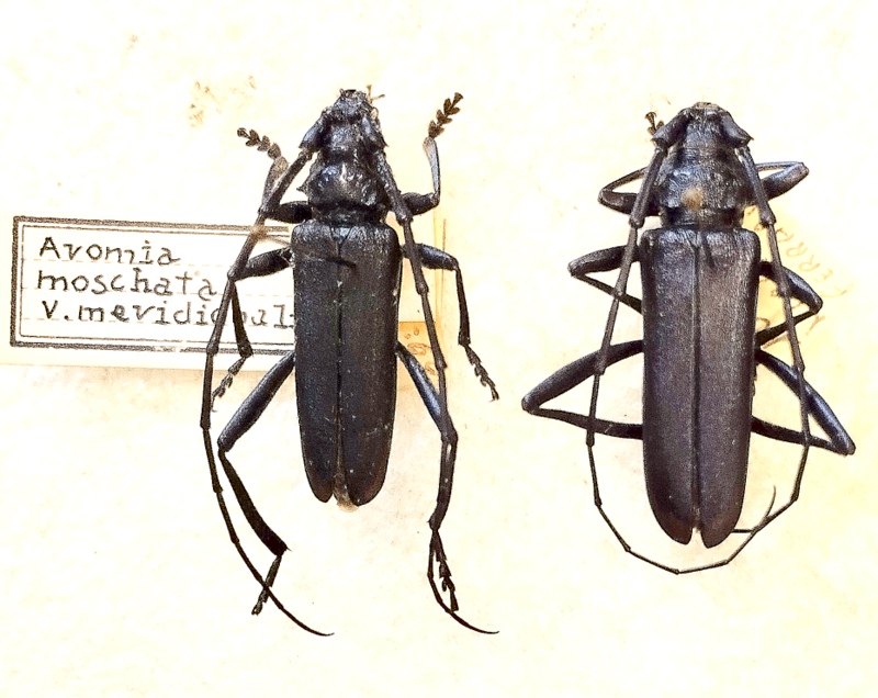 La prima a sinistra riporta 2-VII-69 - Macerata - Leg. Ferracuti e determinata allora come Aromia moschata v. meridionalis.