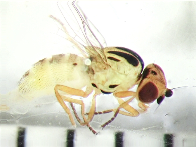 Elachiptera bimaculata (Loew, 1845) - Chloropidae - predato da Imenottero