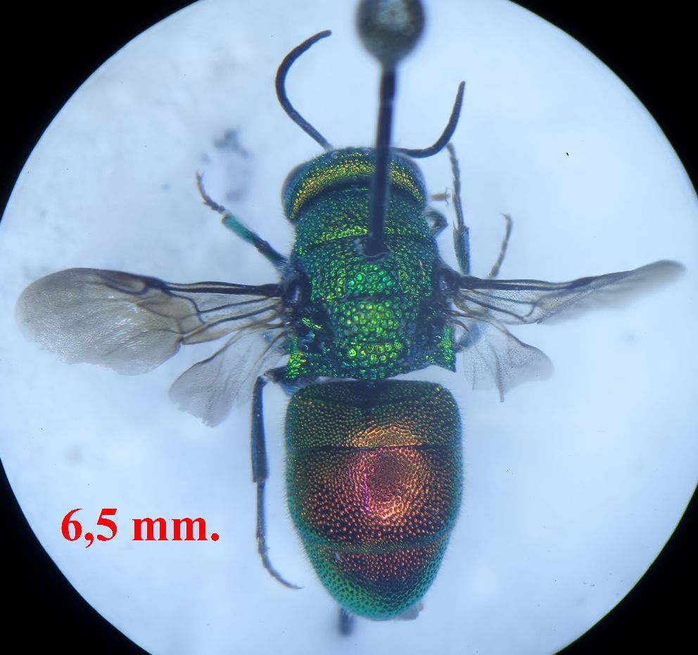 | ... Di primo acchito a me sembra un criside più robusto e massiccio di Holopyga jurinei . Potrebbe anche trattarsi di Holopyga del sottogruppo generosa ... ... dato che chiaramente, dalla punteggiatura dell'addome, non è una sardoa In effetti io pensavo a qualcosa tipo amoenula occidenta , nota per ... |