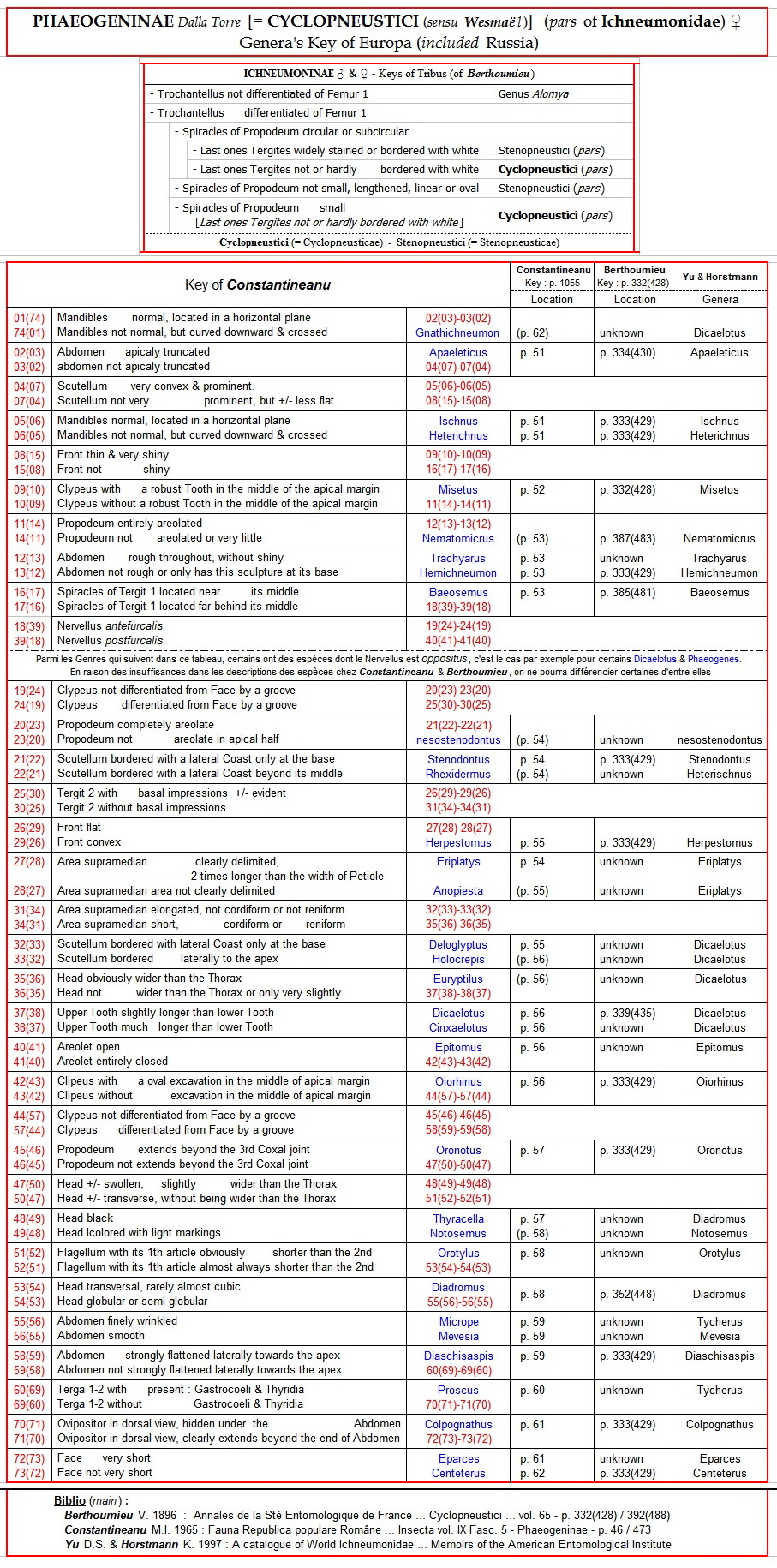 Phaeogenes (pars of Phaeogeninae) female - Species's Key of Constantineanu in Europa (included Russia) - Keys modified, from Berthoumieu , Yu & Horstmann - Ichneumonidae