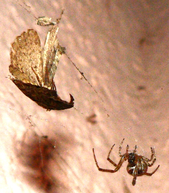 Zygiella cf. x-notata (Clerck, 1757) - Araneae, Araneidae - Quartucciu (CA) preda Catarhoe basochesiata