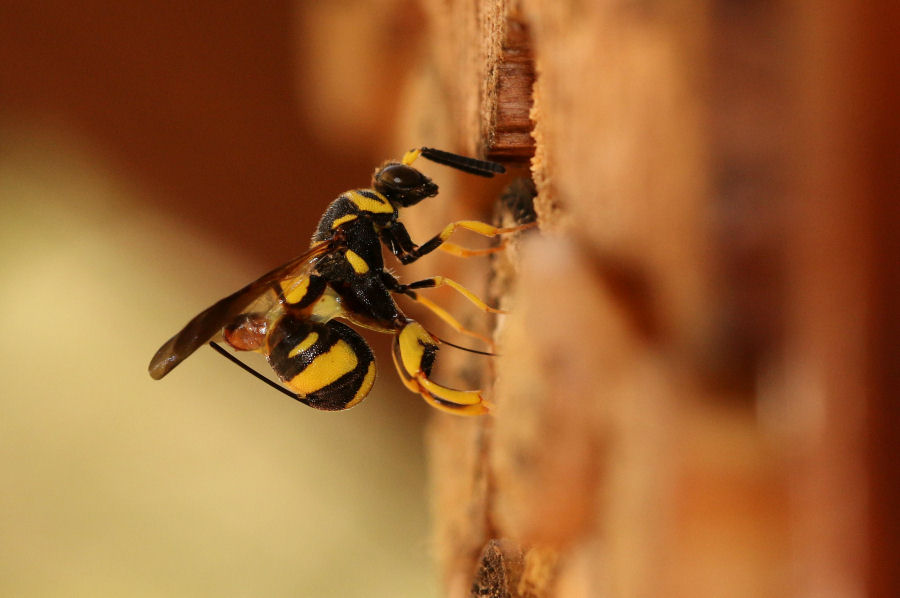 L'ho ripreso mentre stava "trapanando" un nido di Heriades, spingendo la terebra sempre più in basso.