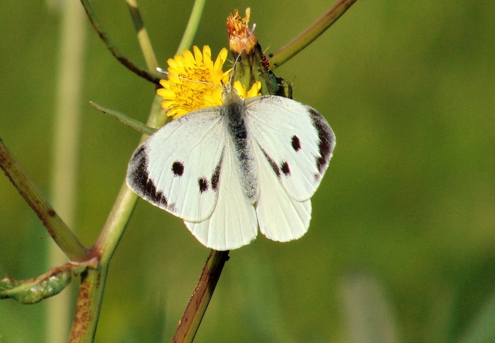 Mirko, non per fare il professore, ma cerca di utilizzare una terminologia adeguata; quel fiore su cui è posata la farfalla non è un arbusto ma caso mai una pianta erbacea...in particolare una Asteracea liguliflora. Gli arbusti sono un'altra cosa. Se proprio non conosci la pianta basta semplicemente dire: su un fiore.
