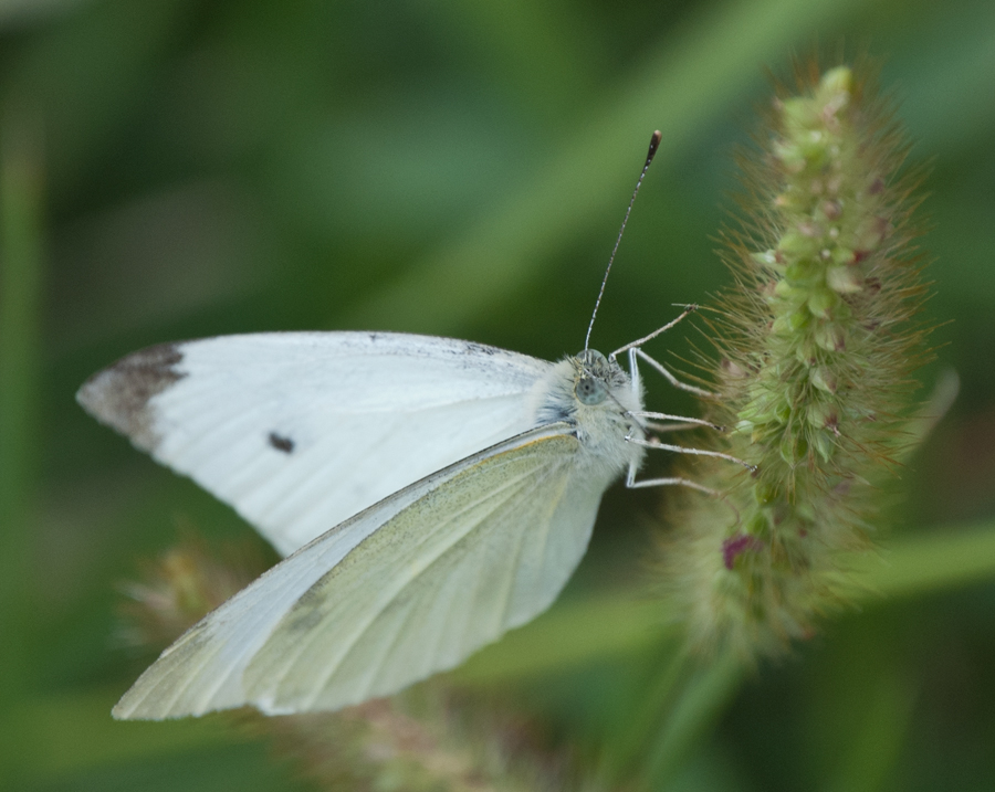 oggi parliamo di Pieris! Questa farfallina l'ho "beccata" qui presso il nostro fiume ... Sono indeciso sulla sua determinazione. Ero propenso per una "solita" femmina di Pieris rapae (per via delle ali senza macchie nella pagina inferiore e per lo spigolo vivo delle ali anteriori. Tuttavia sia per la forma della macchia apicale dell'ala anteriore e sia perché mi pare di scorgere, in trasparenza, due macchiette sull'ala anteriore nella faccia superiore, ciò mi porterebbe più ad un maschio di P. ergane (specie di cui non conosco esattamente la distribuzione).