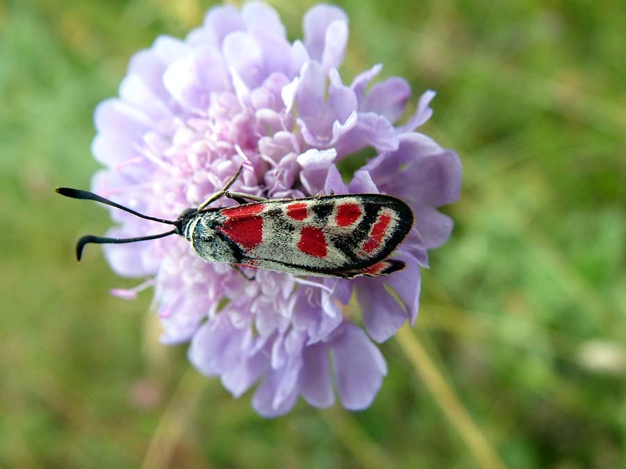 Scusate, le farfalle non sono decisamente la mia parrocchia... :oops: ma questo Zigenide mi ha colpito per la livrea, per me piuttosto insolita. E' una Z. carniolica? Normale tutto quel bianco sulle ali?