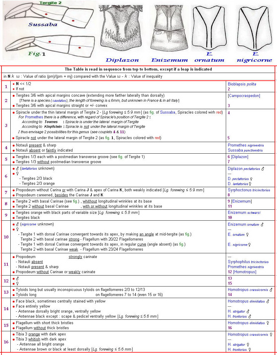 "Adaptation for the ♂ & ♀ (of France and Italy) of the subFamilies's Key ..."