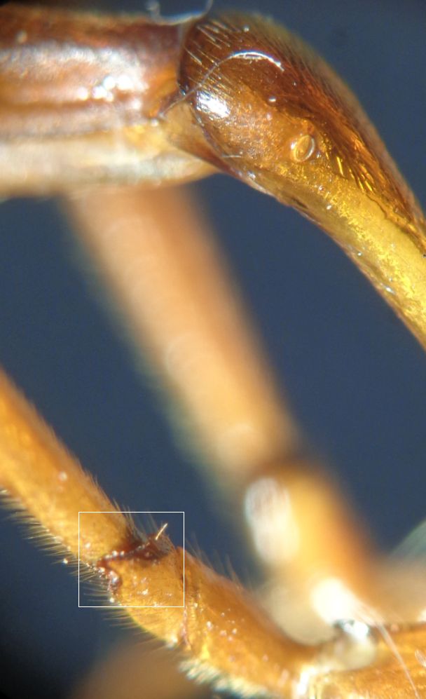 Pare che sia parassita di Stauropus fagi: femmina di mm 36 di apertura alare e mm 24 di lunghezza. Riconoscibile tra gli Ophioninae, oltrechè per le dimensioni, per la nervatura Rs+2r (uscente dallo pterostigma) curvata e ingrossata alla base e per il dentino sui metatrocantelli, sul lato esterno (riquadri).