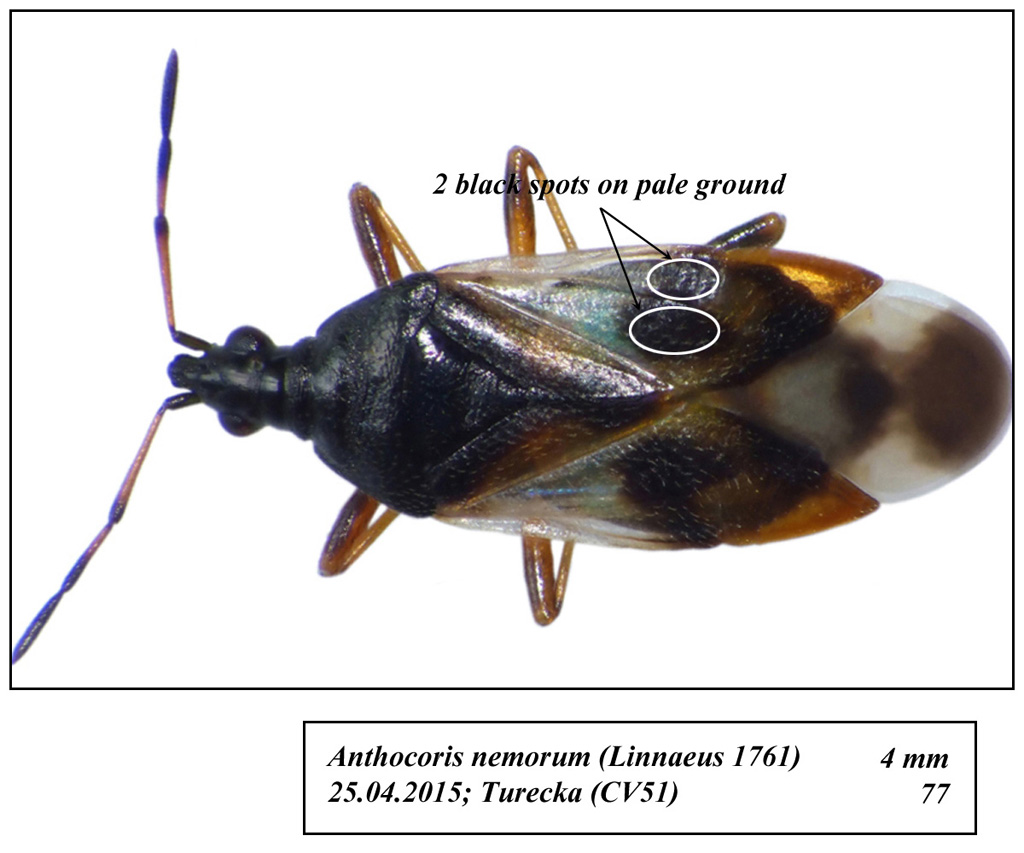 In A.nemorum there are two black spots on the corium which are on a white base colour.But in A.nemoralis this spots are smaller,pale and are on a black base colour.