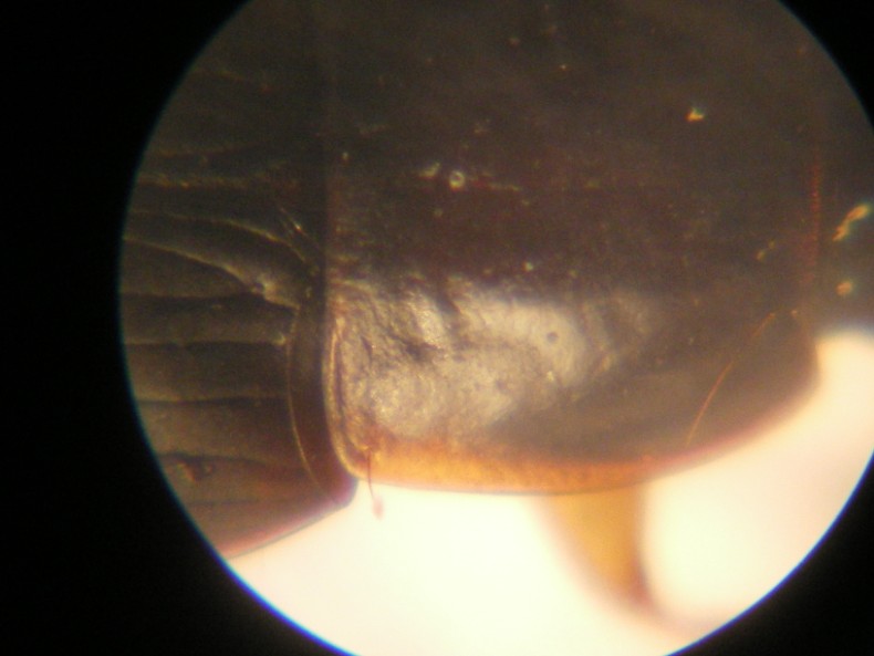 1) i tarsi post. nel melanocephalus sono più esili che in mollis e cinctus (osservare in particolare il rapporto lunghezza/spessore del 1° articolo), attenzione a utilizzare per confronto exx. dello stesso sesso di quello che si sta esaminando