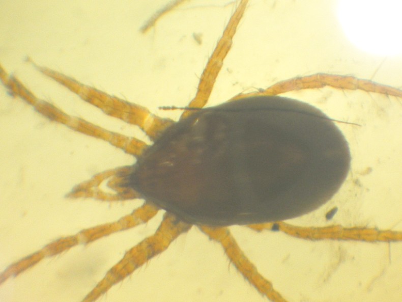 Ciao Giacomo, questa è sicuramente una deutoninfa di Parasitellus sp. - Mesostigmata Parasitidae.