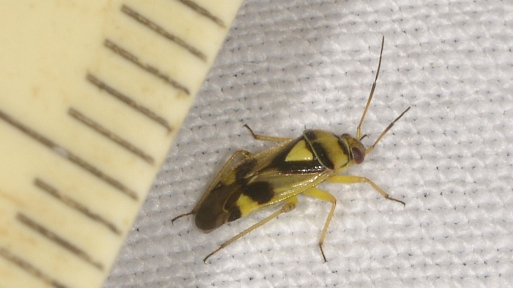 Un piccolo ( 5mm) Miridae, trovato su un telo illuminato di notte, che avrei identificato come Orthops, ma per la specie sono in dubbio tra O.kalmii e O.basalis... , sempre che non sia tutt'altro.