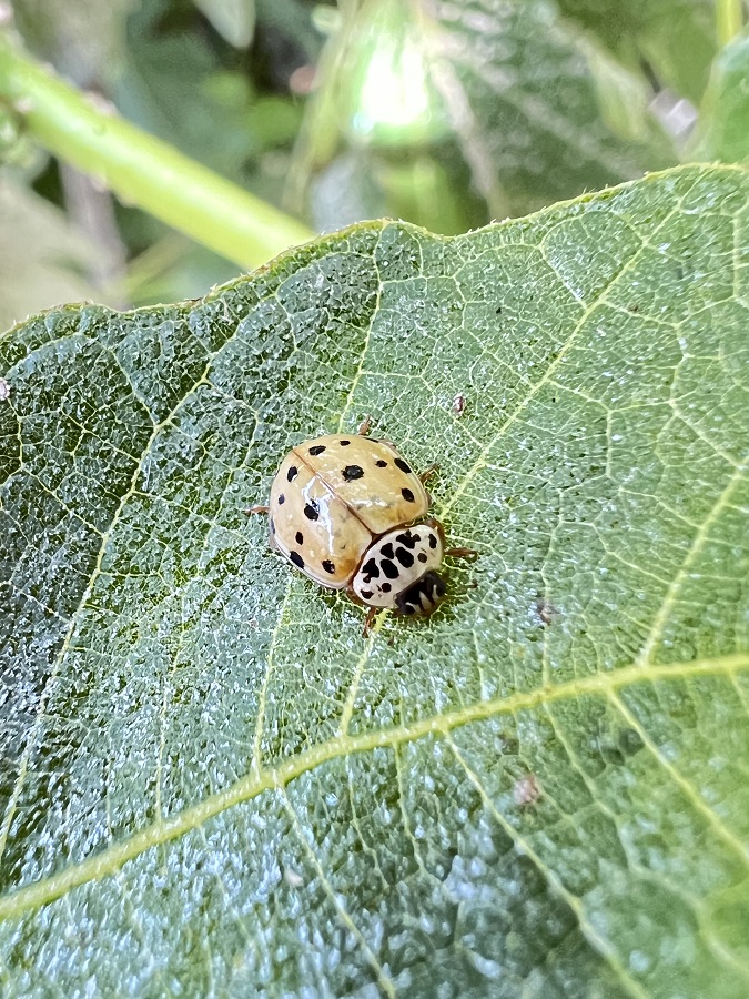 Dal raffronto con le nervature delle foglie di fico direi che le dimensioni sono più da Harmonia axyrydis.