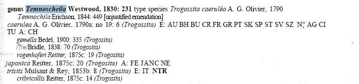 caerulea A. G. Olivier, 1790a: no 19: 6 (Trogossita) E: AU BH BU CR FR GR PT SK SP ST SV SZ N" AG CI