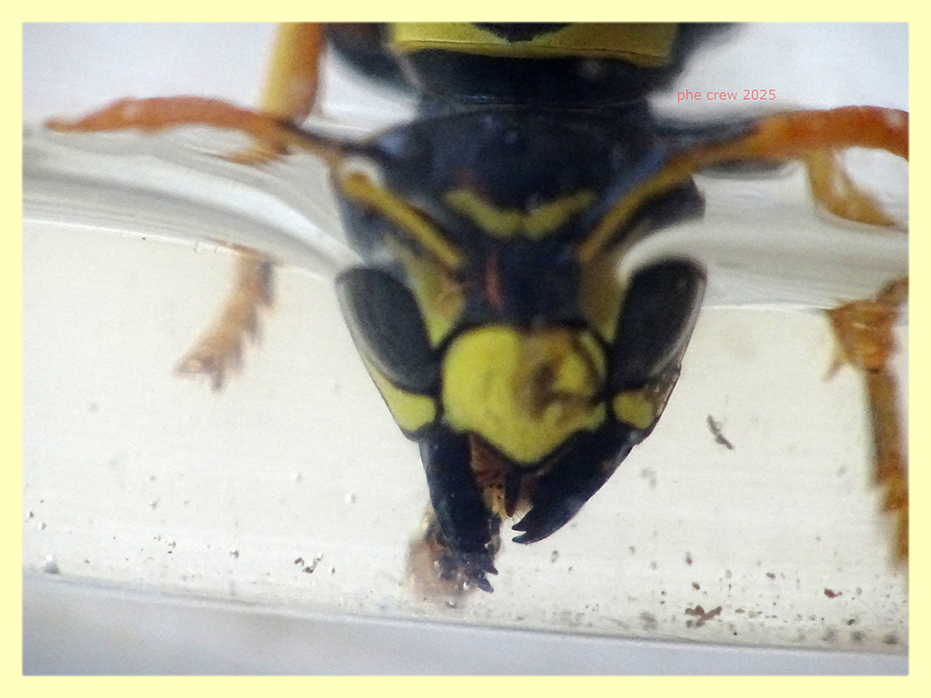 ....un po di giorni fa andai al Bosco dell' Armellino tra Anzio e Nettuno periferia romana, incontrai un paio di piante di Finocchietto selvatico belle alte tutte tempestate di Imenotteri ! Di foto nemmeno una...perche', appunto essendo troppo alte, ogni volta che prendevo un gambo per avvicinarlo all' obiettivo se ne volavano via ....e c' ho rinunciato. Scorsi un minuscolo Evaniidae che non avevo mai visto, probabilmente un Brachygaster minutus :p ....c' era anche un probabile Chalybion bengalense :p tutto scintillante e veloce in mezzo ai fiorellini.....e un Leucospididae mai visto ( :p ) scuro e la meta' della misura di un Leucospis dorsigera quindi sui 5 o 6 mm. E tantissimi altri Imenotteri piccoli e grandi.....quindi oggi ritornai con qualcosa per acciuffarli, e indovinate quale di queste specie ho preso ?....nemmeno una ! Mi sono messo a cercarle....mi sono cecato specialmente per riconoscere l' Evaniidae....ma nisba. Allora ho deciso di prenderne altri...ne ho presi tre o quattro. Tra questi c' era questa Polistes sp. parassitata da uno Strepsiptera (in foto non si vede). Gli ho subito dato da bere acqua e miele....e appena gli misi un bel goccione ci si fiondo' dentro infilandoci quasi tutta la testa :o . Mi accorsi solo dopo aver fatto delle foto che aveva un broblema all' apparato boccale. Riusciva ad aprire solo la mandibola destra e teneva sempre fuori la "lingua" .....Purtroppo le foto sono fatte attraverso una scatolina trasparente e non sono un granche', ho potuto fotografare solo la faccia che era piu' vicina, la parte da sopra, pronoto e addome....specialmente l' addome dove e' lo Strepsiptera, non l' ho potuto fotografare perche' troppo distante e sarebbe venuto sfuocato. Approfitto quindi di questo post per chiedervi se a qualcuno di voi e' andato a buon fine un allevamento di Strepsiptera...e qualche consiglio ovviamente. :hi: