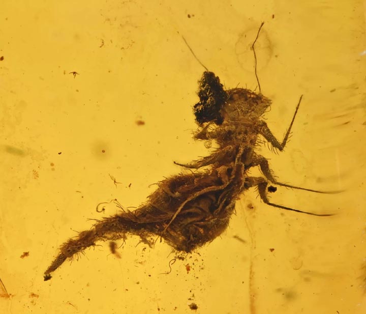 Ho un altro esemplare fossile in ambra di presunta neanide di libellula, così si possono confrontare.