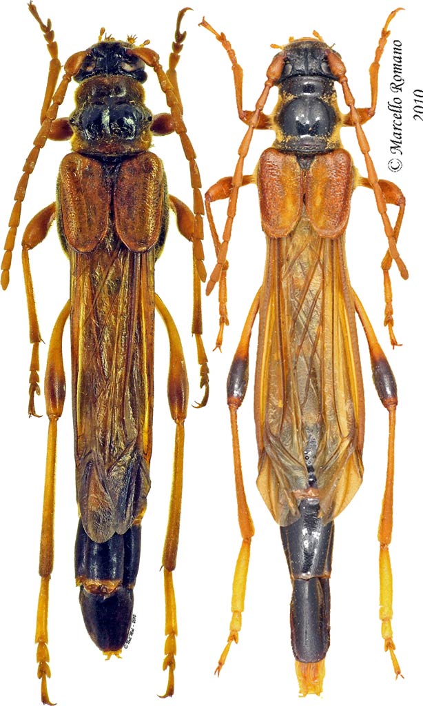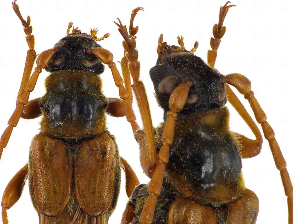 Plagionotus ha scritto: I'm not Gianfranco, but I think that those two specimens (the Marcello's one and the Noel's one) are simply to identify  . Marcello's one is a Necydalis major (segments of adbomen more long and pubescens of pronotum more sparser). Also the general habitus seems Necydalis major's one. So I think that the Marcello's specimens is a Necydalis (Necydalis) major major Linnaeus, 1758 and the Noel's one Necydalis (Necydalis) ulmi (Chevrolat, 1838). Attending the definitive identification of Gianfranco (Isotomus)  in the book the mention on length/width of the abdominal segments is clearly stated only "on males"... Bense is the only book I have with key. and on Marcello specimens at least from I see the pubescence is much more dense than in the Noel one (1 point for ulmi), the tibiae of last leg is with dark apex (another point for ulmi). will be nice if a crop on the pronotum from both specimens will be posted.