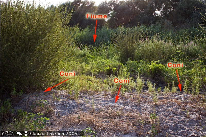 Fiume Neto - Strongoli (KR) - 16 agosto 2009 - Ambiente (le frecce indicano la presenza di coni)