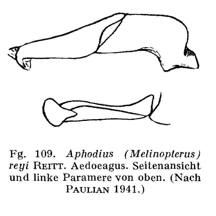 Il pronoto dell'esemplare che hai fotografato sembra quello di una femmina. Quindi lo sperone è uguale nelle due specie. Per quanto riguarda la sutura frontale, da quello che si vede pare che ci sia, e che sia interrotta al centro. Quindi potrebbe essere veramente Melinopterus reyi (Reitter, 1892). Ma per avere la conferma ci vuole un maschio. Il prossimo anno corri nella stessa località e nello stesso periodo, e raccogli più esemplari che puoi. E senza problemi di natura conservazionistica. La sopravvivenza di qualsiasi popolazione di Scarabeidi coprofagi non dipende certo dagli entomologi che raccolgono qualche decina di esemplari in più, piuttosto dal pastore che decide di dismettere il pascolo o dalle amministrazioni, o da chi per loro, quando distruggono sistematicamente ambienti ed habitat.
