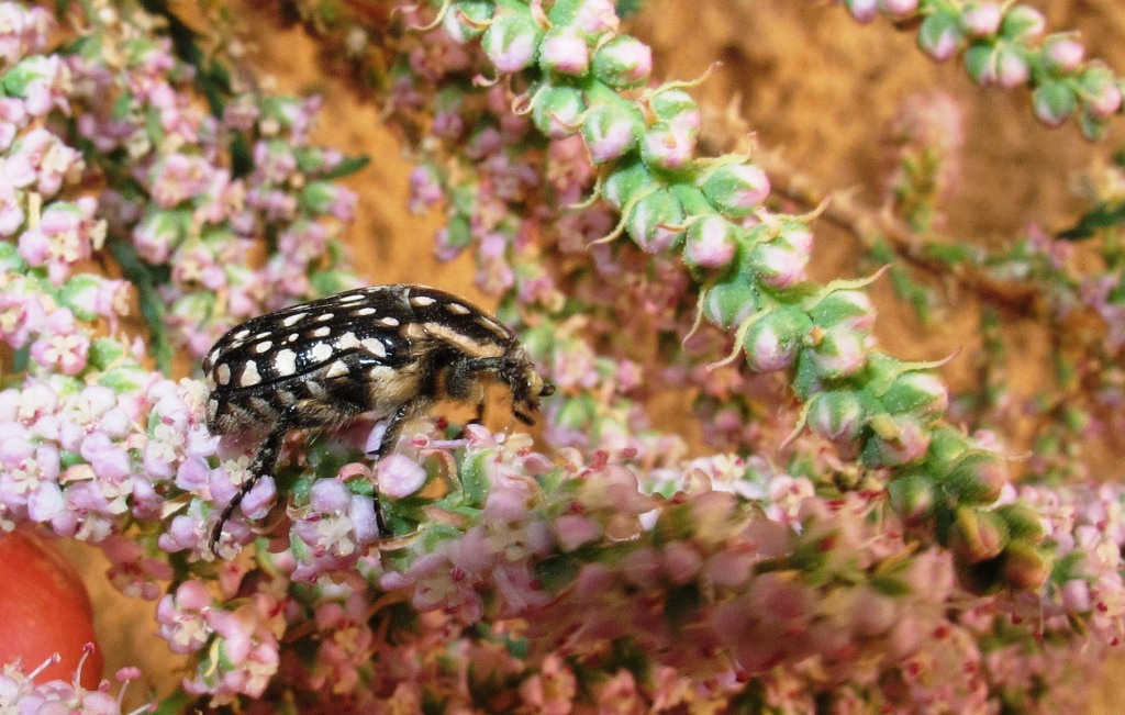 Ecco la Oxythyrea pantherina G. & P., 1833, diffusa dal Marocco alla Libia, con le tipiche maculature bianche estese sull'addome del maschio.