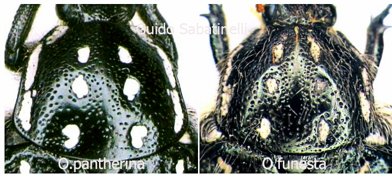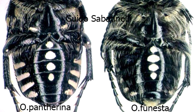 Ora che ho preparato un po' di esemplari e fatto qualche foto approfitto per fornire delle immagini comparative di O.pantherina e O.funesta con l'augurio possano servire ai meno esperti.