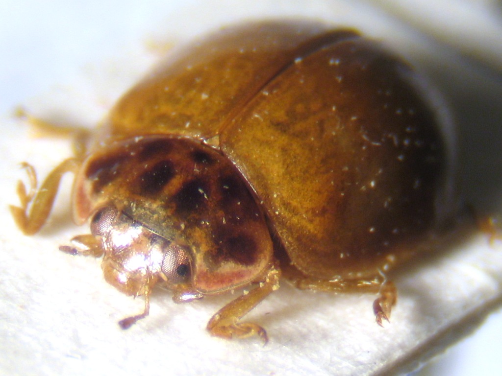 Questa coccinella è praticamente senza pattern se non sul pronoto, ma secondo me rientra nella variabilità della Adalia decempunctata. Ogni conferma o smentita è gradita L. = 4,5 mm