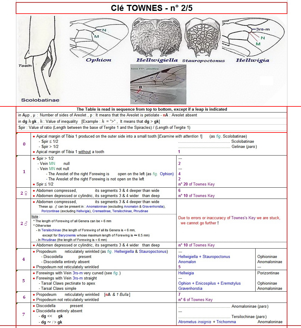 02/05 - Adaptation for the ♂ & ♀ (of France and Italy) of the subFamilies's Key contained in "The Genera of Ichneumonidae" of H. Townes (1969 - p.53/59) - Ichneumonidae