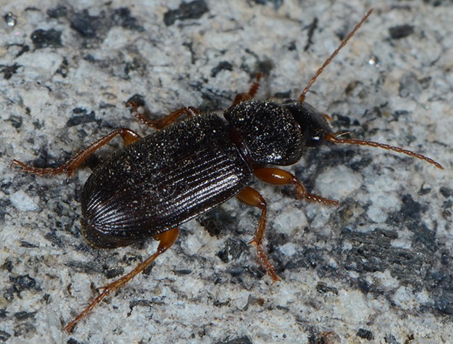 Alcuni, che credo siano degli Harpalinae (Ophonus?) erano divisi in due gruppi di dimensioni. Una metà misuravano 7-8 mm, mentre la seconda metà misuravano 11-12 mm. i più piccoli avevano il pronoto pustulato di fitti punti depressi, mentre nei grandi i punti depressi erano confinati alla base, ed il resto del pronoto era liscio, Per il resto erano molto simili, tanto che ho pensato che potessero essere non necessariamente specie diverse, ma un'unica specie con forte dimorfismo sessuale.