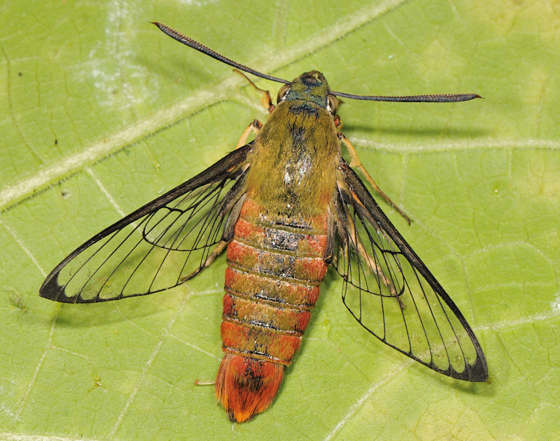 Tony Pittaway ha mandato le mie foto a Ian Kitching, del Natural History Museum di Londra http://www.nhm.ac.uk/research-curation/ ... -3564.html che mi scrive: Cita: ... Both Cephonodes are C. tamsi. The reddish one is a male and thus agrees with the general description of the species. The greenish moth is a female, which I have never seen before and it would appear that the species is somewhat sexually dimorphic in the amount of red. C. tamsi was considered potentially extinct but there have been a number of recent records. However, these have been from the smaller islands of the Seychelles, so it may indeed have gone from Mahé. Your records are the first I have of any sphingid from La Digue. Traduco: Entrambe le Cephonodes sono C. tamsi. Quella rossastra è un maschio e quindi è in accordo con la descrizione generale della specie. Quella verdastra è una femmina, che non ho mai visto prima d'ora, e sembrerebbe che la specie è in qualche modo sessualmente dimorfica come quantità di rosso. C. tamsi era stata considerata potenzialmente estinta ma c'erano state un certo numero di segnalazioni. Queste comunque si riferivano alle più piccole isole delle Seychelles, quindi può essere sparita da Mahé. Le tue segnalazioni sono le prime che io possiedo di sfingidi a La Digue