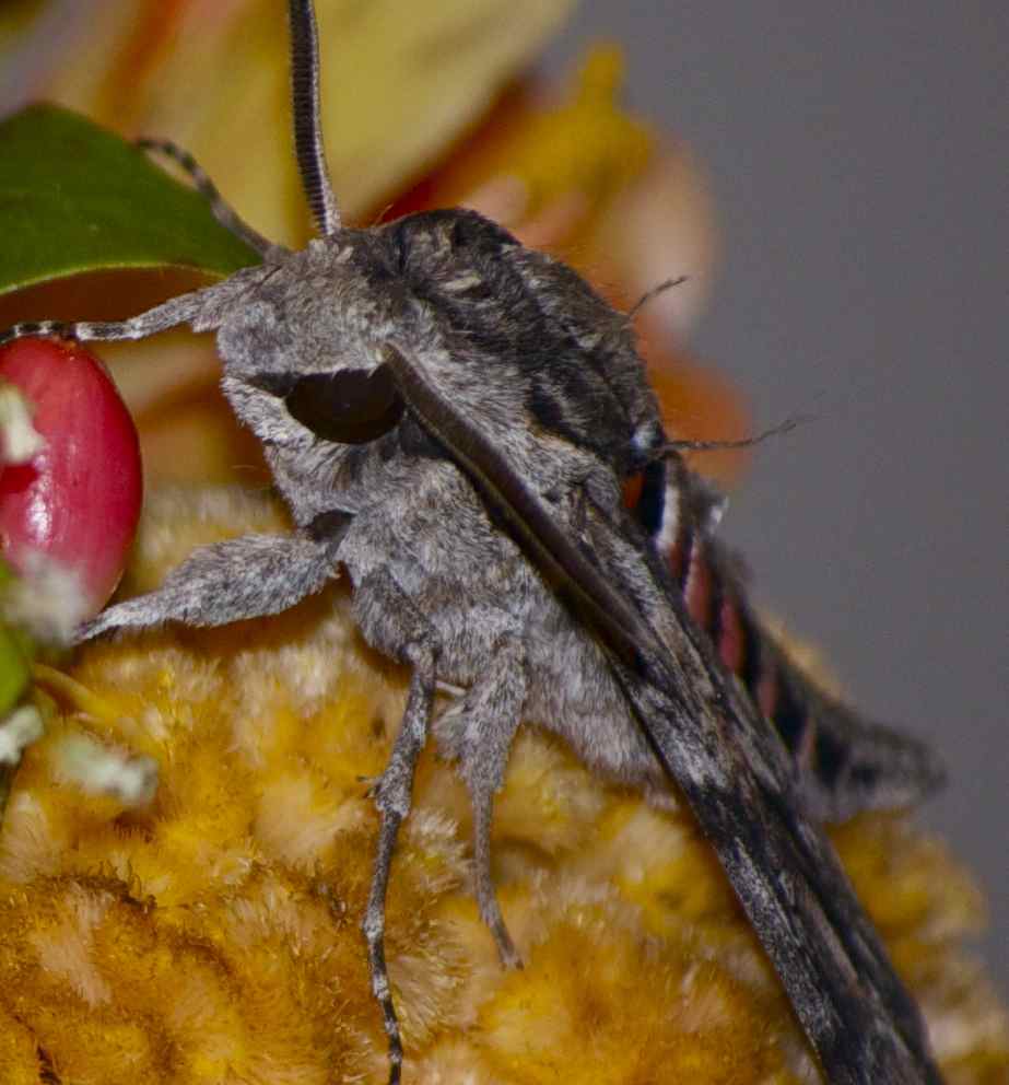 L' estate scorsa ho fotografato una femmina di Agrius convolvuli talmente grande che avevo quasi sperato fosse una cingulata. Ma la livrea era tale e quale a quella nostrana, doveva essere solo un esemplare un po' troppo cresciuto!