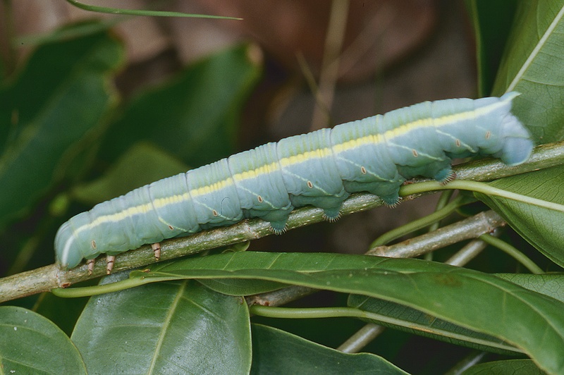 Questa non è venuta alle lampade: da Rancho Grande, tra una caccia al lume e l'altra, siamo scesi, scavalcando il Paso de Portachuelo (rotta migratoria di una moltitudine di uccelli e insetti), dalle Ande venezuelane fino alla costa; in pochi minuti si passa dalla umidissima e verdissima "cloud forest" ad un "matorral" xerico con cacti a candelabro, fino ad arrivare a Ocumare della Costa, un paesino sul mare con una bella spiaggia, dove ho trovato questa simpatica larva, che ho preso ed allevato durante tutto il resto del viaggio, ottenendo l'adulto di cui sopra. ;)