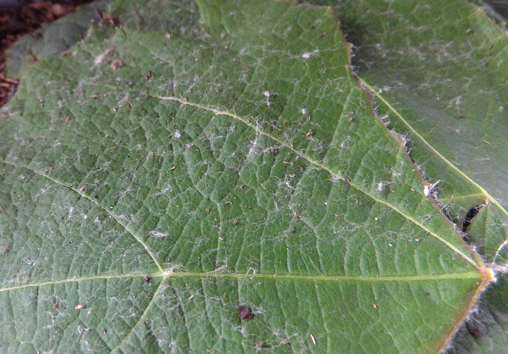 Grazie! Un'ultima domanda e poi ho finito. Sulle foglie trovo una specie di patina filamentosa bianca, è lui che la lascia giù?