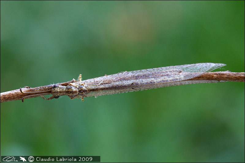 Buonasera a tutti, questa volta non mi azzardo a dare un ipotesi di determinazione. Ho provato a cercare ma non ho trovato nulla che somigliasse all'esemplare che vi sto per presentare (non escludo che non abbia saputo cercare  ). Di dimensioni molto piccole, testa/punta ala ca. 26mm, ala ca. 22mm. Il luogo di ritrovamento è lo stesso delle larve di Myrmecaelurus trigrammus e dell'adulto Myrmecaelurus trigrammus, Fiume Neto - Strongoli Marina (KR) il 16 agosto 2009. In un punto più lontano dal corso d'acqua, ma abbastanza fitto di vegetazione.