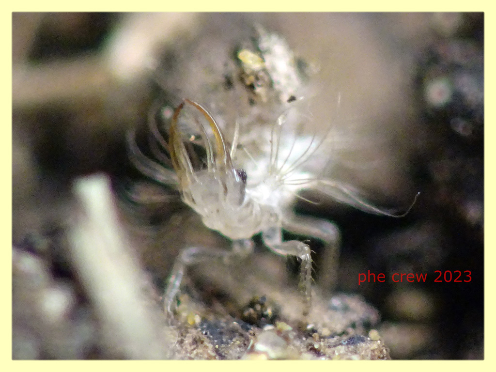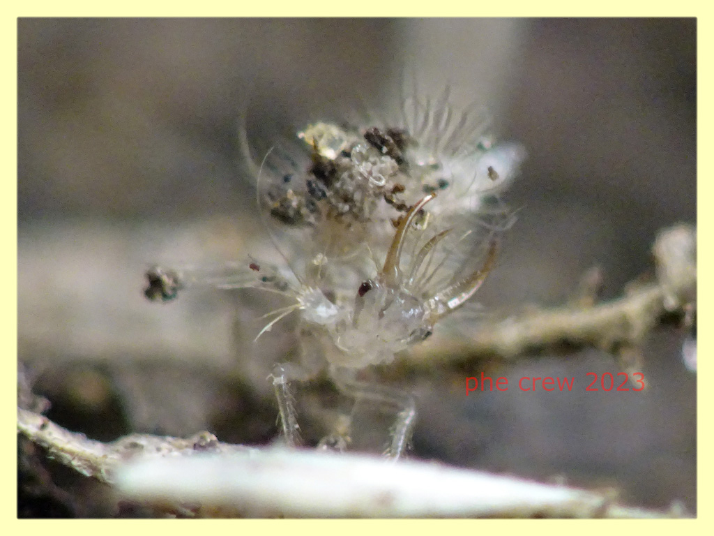 ...approfitto di questo post per inserire una sequenza di foto di una larva di Chrysopidae...precisamente una larva di Pseudomallada prasinus (gia' allevata in passato). In effetti sul groppone si mettono di tutto anche piccoli detriti come in questo caso. E' una larva di 1,5 mm. del 11.IX.2023 fotografata ad Anzio (RM). La posto soprattutto perche' mi ha incuriosito come si sceglieva accuratamente i detriti che poi si incastonava sulla schiena. Con le antenne (quelle piu' lunghe e fini) tasta il terreno...