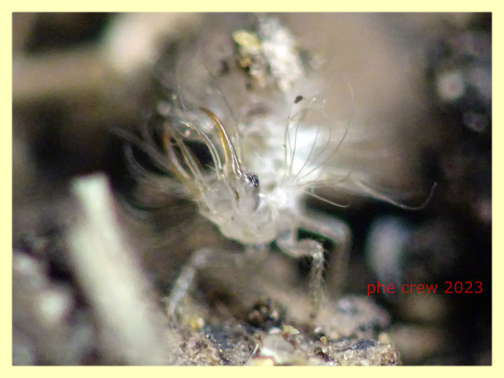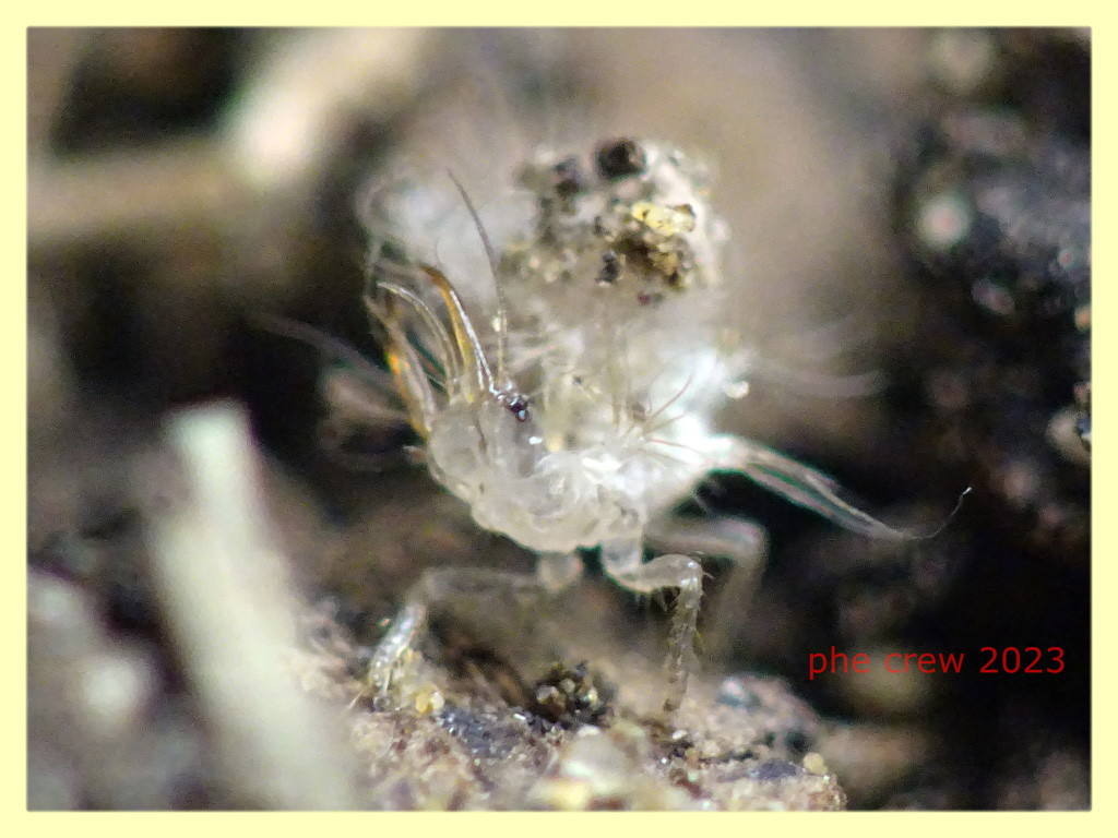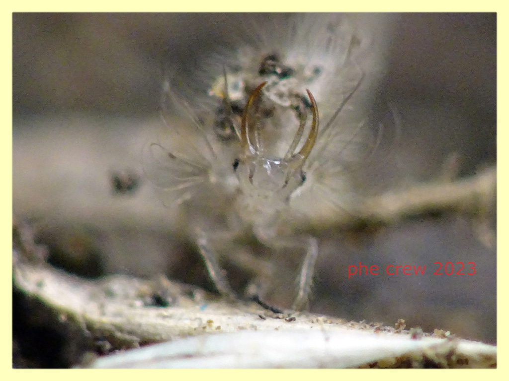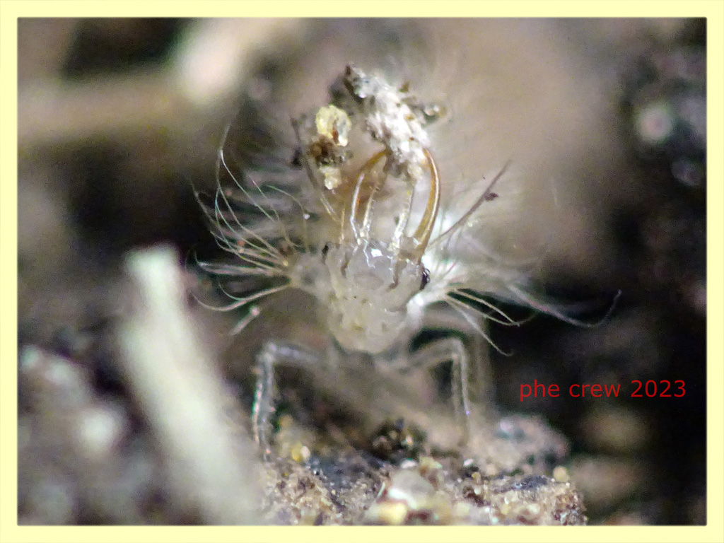 ...approfitto di questo post per inserire una sequenza di foto di una larva di Chrysopidae...precisamente una larva di Pseudomallada prasinus (gia' allevata in passato). In effetti sul groppone si mettono di tutto anche piccoli detriti come in questo caso. E' una larva di 1,5 mm. del 11.IX.2023 fotografata ad Anzio (RM). La posto soprattutto perche' mi ha incuriosito come si sceglieva accuratamente i detriti che poi si incastonava sulla schiena. Con le antenne (quelle piu' lunghe e fini) tasta il terreno...