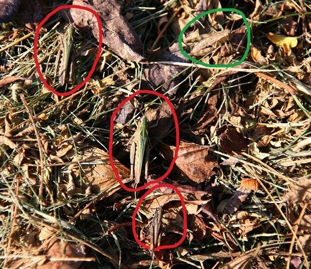 Ho cerchiato in rosso gli animali di cui mi sto interessando (supponendo che siano della stessa specie) dato che non penso di averli incontrati prima di allora. In verde quella che penso sia una Pezotettix giornai