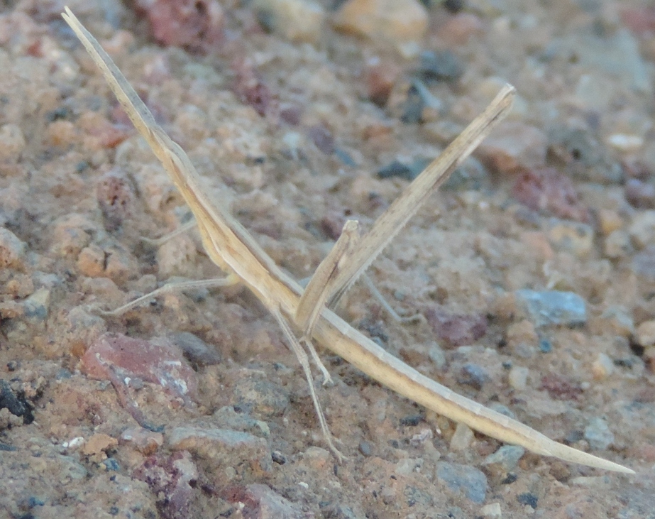 é presente anche Acrida ungarica mediterranea e se si dà retta alla posizione del "solco tipico" che taglia il protorace dietro la metà, come qui, e dando per scontato che sia così anche prima dell'ultima muta, dev'essere tale specie.